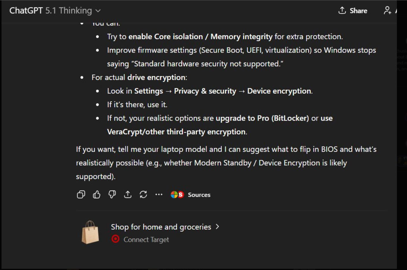 Example of ChatGPT’s Ads - seems like this one was for Target