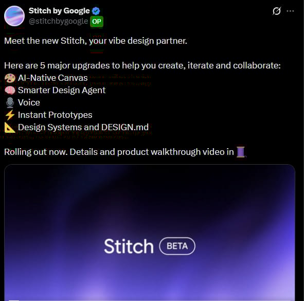 Google Stitch Announced Today Via X
