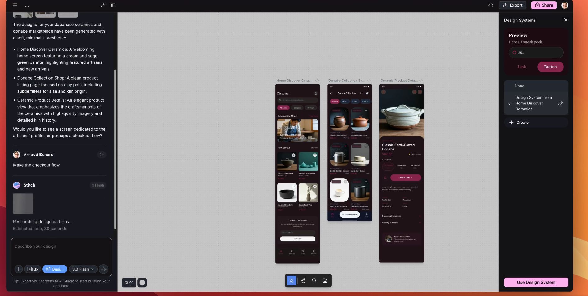 You can now stitch screens together in seconds and hit Play to preview your interactive app flow instantly. The AI auto-generates logical next screens based on user clicks. So you're not just designing individual screens anymore. You're designing entire user journeys.